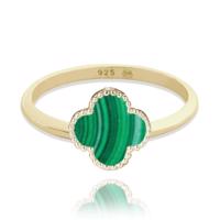 MINET Pozlacený stříbrný prsten čtyřlístek se zeleným malachitem vel. 54